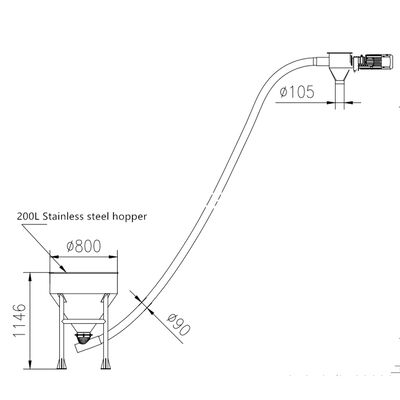 Transporteur à vis flexible résistant à la corrosion de qualité alimentaire conçu pour les semences, les céréales et les applications spécialisées dans les industries alimentaire et chimique.